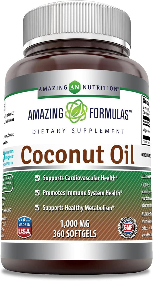 Amazing Formulas Extra Virgin Coconut Oil 1000mg 360 Softgels Supplement | Non-GMO | Gluten Free
