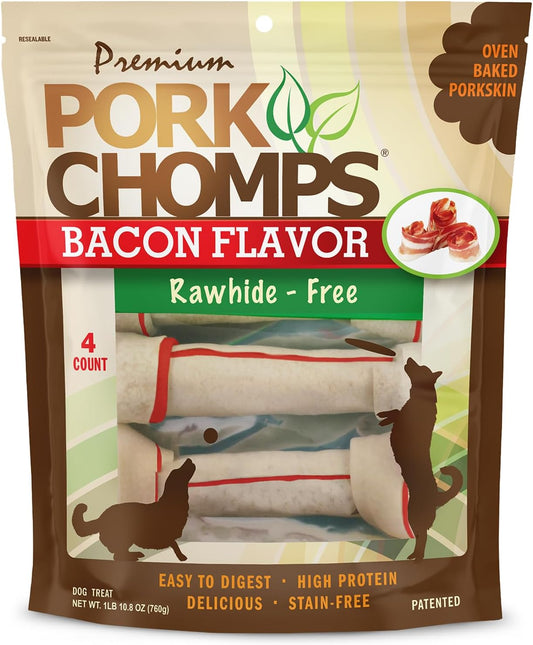100% Rawhide Free Dog Chews - Pork Chomps Oven Baked Pork Skin Rolls Are Long...