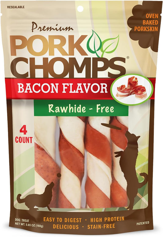 100% Rawhide Free Dog Chews - Pork Chomps Oven Baked Pork Skin Twists Are Long...