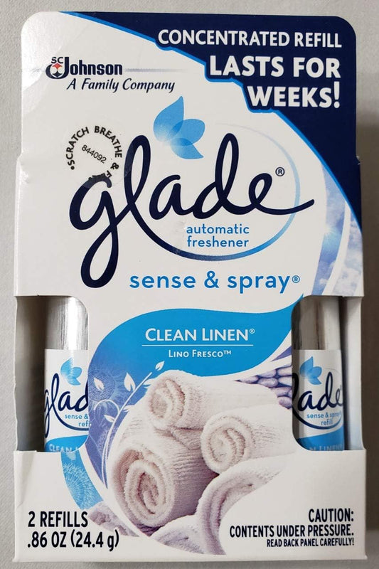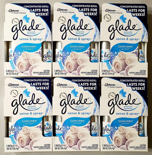 12 Glade Sense & Spray Automatic Freshener Refills CLEAN LINEN (6 Twin Packs)
