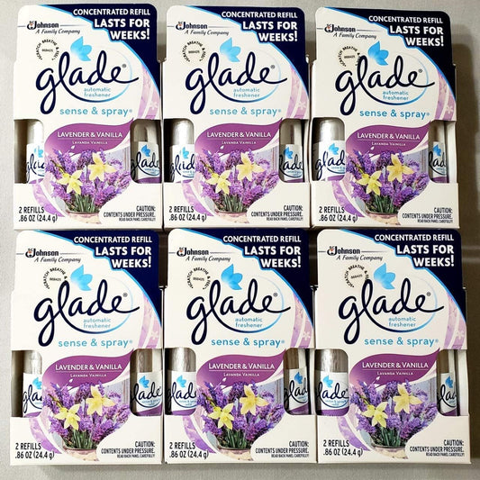 12 Glade Sense & Spray Automatic Freshener Refill Lavender & Vanilla (6 Twin Pack)
