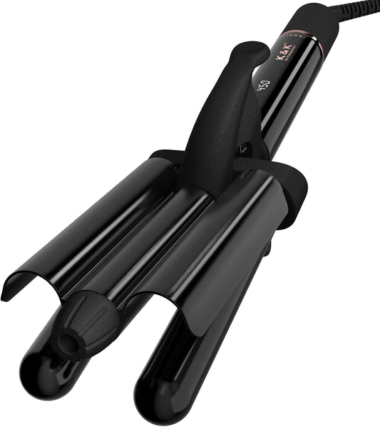3 Barrel Wave Crimping Iron With Lcd Display, 1 Inch Ceramic Triple Barrel Beach Waver, Dual Voltage