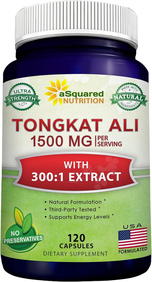aSquared Nutrition Tongkat Ali 1500mg - 120 Capsules - Longjack (Eurycoma Longifolia) Extract Supplement &...