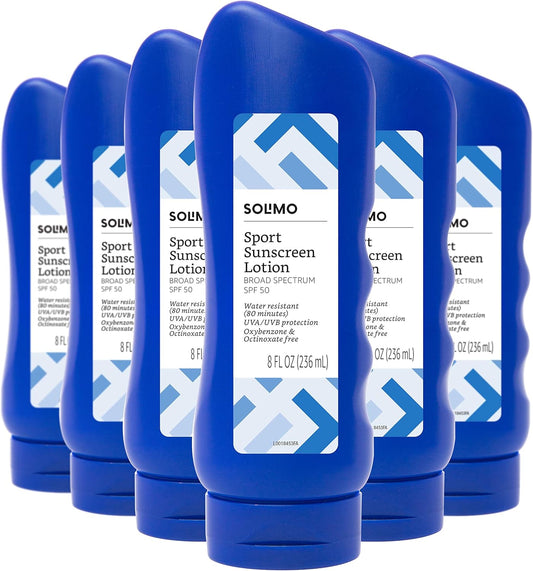 Includes Six 8-Fluid Ounce Bottles Of Solimo Sport Sunscreen Lotion Formulated Without Octinoxate & Oxybenzone...