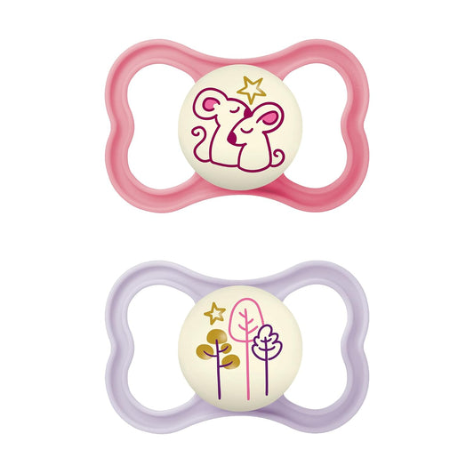 Mam Air Night & Day Baby Pacifier, For Sensitive Skin, Glows In The Dark, 6-16 Months, Girl, 4 Count