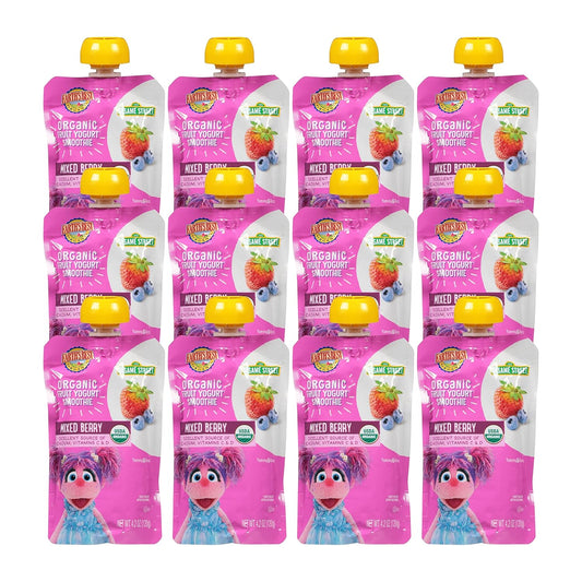 ORGANIC SNACKS FOR KIDS: Playful Sesame Street characters, yummy organic fruit flavors, and easy-squeeze pouches...