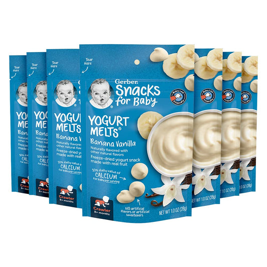 Seven 1 Oz Packs Of Gerber Yogurt Melts Banana Vanilla Freeze Dried Yogurt & Fruit...