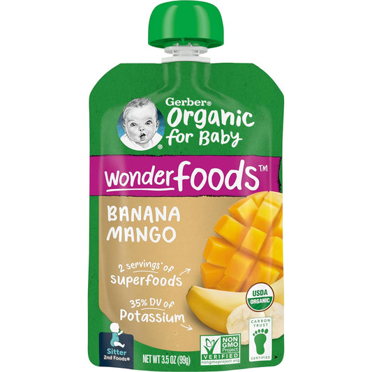 Twelve 3.5 Oz Pouches Of Gerber 2Nd Foods Organic Banana Mango Baby Food Gerber Baby...