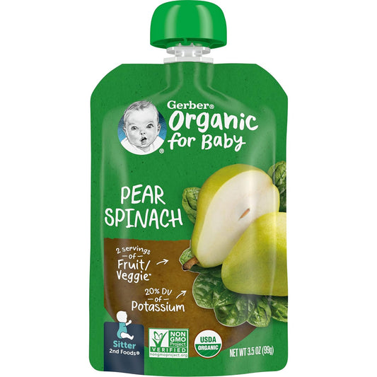 3.5 Oz Pouch Of Gerber 2Nd Foods Organic Pear Spinach Baby Food Gerber Organic Baby...