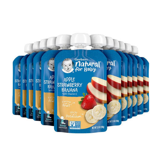 12 Ct Pack Of 3.5 Oz Pouches Of Gerber 2Nd Foods Apple Strawberry Banana Baby...
