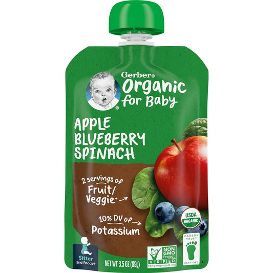 Twelve 3.5 Oz Pouches Of Gerber 2Nd Foods Organic Pear Blueberry Apple Avocado Baby Food...