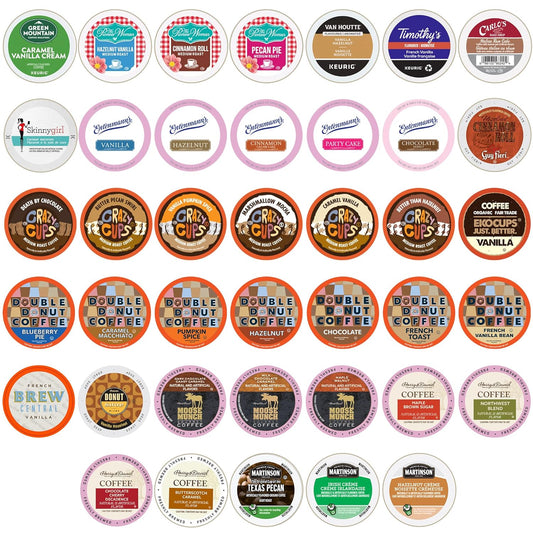 This sampler pack includes 40 premium gourmet single serve coffees from Cake Boss, Crazy Cups,...