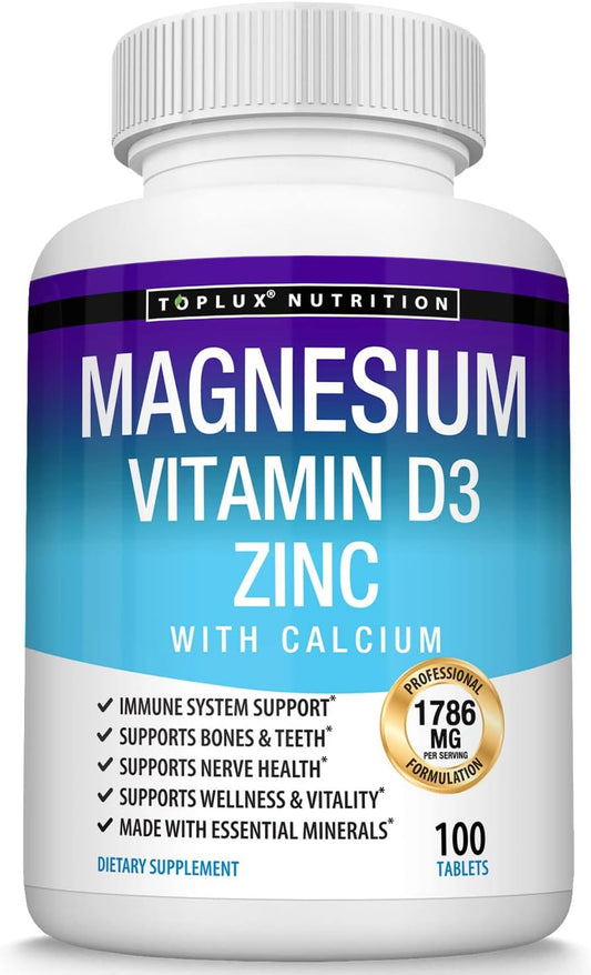 Toplux Magnesium Zinc Calcium Vitamin D3 Complex – Essential Minerals Formulated for Immune System Support,...