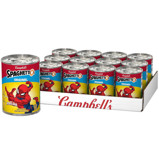Twelve (12) 15.8 oz cans of SpaghettiOs Original Marvel's Spider-Man Shaped Canned Pasta10Neat Spider-Man shaped...