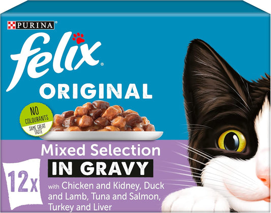 ^ Felix Adult Wet Cat Food Mixed Selection in Gravy & Jelly Tuna and Cod,...