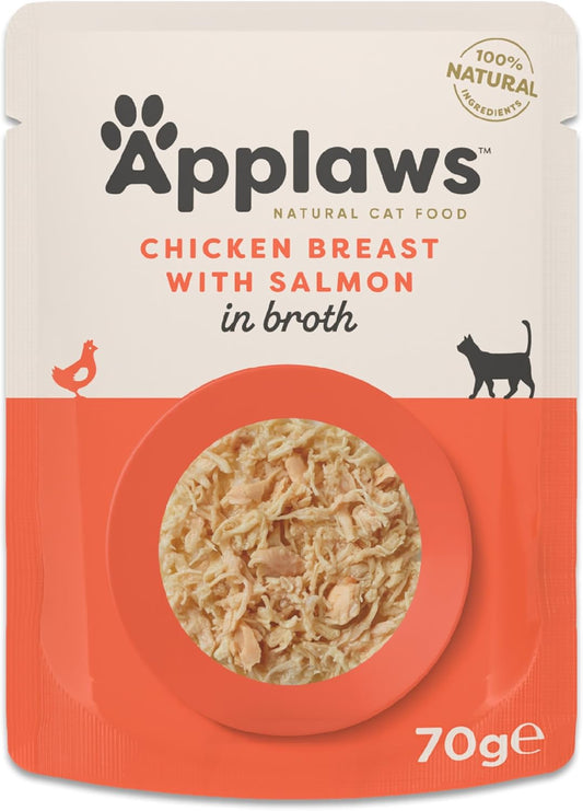 Applaws 100% Natural Adult Wet Cat Food, Chicken With Salmon In Broth 70G Pouch, (12 X 70 G Pouches)