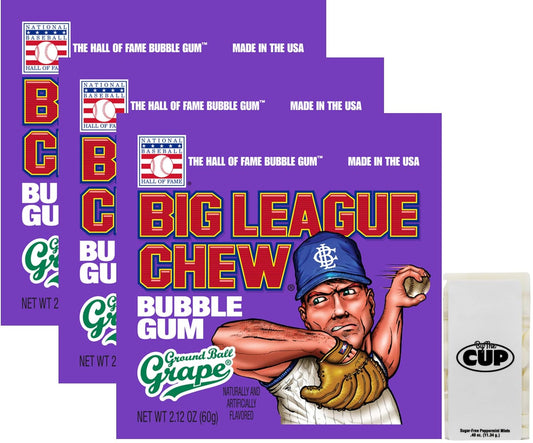 3 - 2.12 oz pouch of Big League Chew Ground Ball Grape Shredded Bubble Gum...