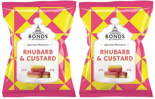 Original Bonds London Rhubarb & Custard Bag Sugar Coated Rhubarb & Vanilla Flavored Boiled Sweets...