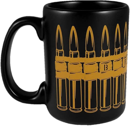 Tribal theme Ceramic Mug Capacity 14 Ounces Ammo Belt Design Hand Wash Only Black Rifle...