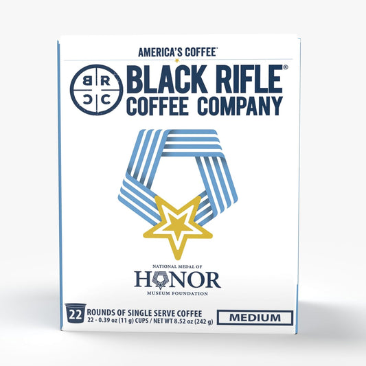 Includes: 22 Coffee Pods Of Black Rifle Coffee Company Medal Of Honor Medium Roast Coffee...