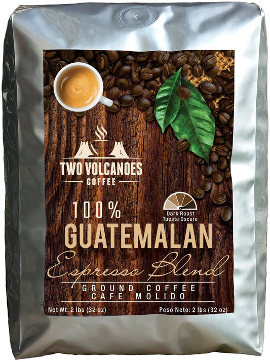 Two Volcanoes Ground Coffee - Dark Roast Espresso Blend - 2 lb bag - Guatemala...