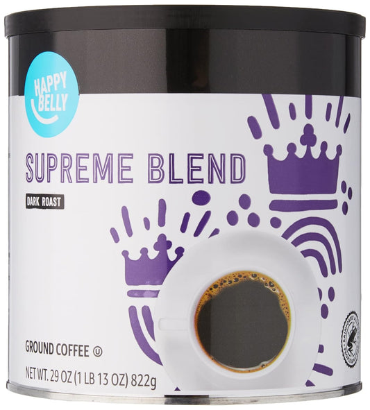 One 29 ounce can of Happy Belly Supreme Blend Canister Coffee10An Amazon brand10Ground coffee10Dark roast1010