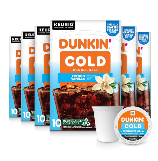 Contains Six (6) 10 Count Pack Of Dunkinā Cold French Vanilla K-Cup Pods Specially Crafted...