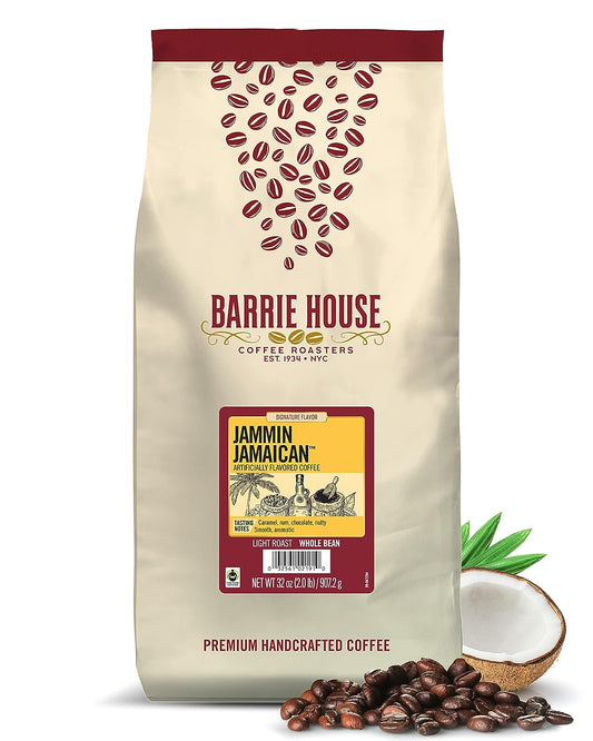 Barrie House Jammin Jamaican Flavored Whole Bean Coffee, 2 lb Bag | Fair Trade Certified...