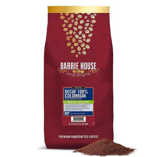 Barrie House Decaf 100% Colombian Single Origin Ground Coffee | Dark Roast | Full-bodied Flavor...