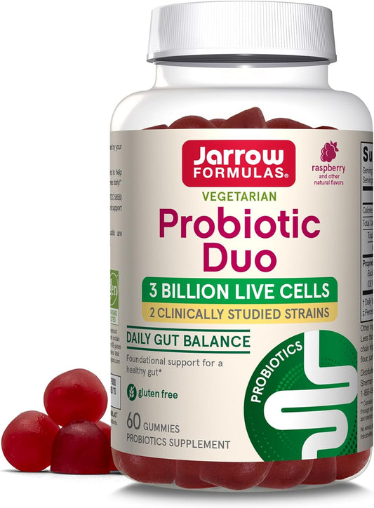BULLET POINTS : 1 > Jarrow Formulas Probiotic Duo Gummies feature two clinically-studied probiotic strains...