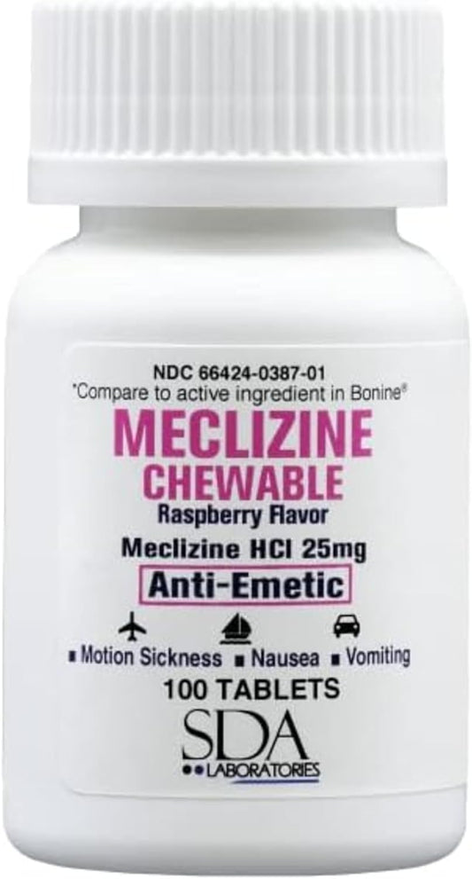Imported by : Esupli Manufacturer:Sda Laboratories Package Dimensions :100.00 Count RELIEF FROM MOTION SICKNESS: Meclizine...