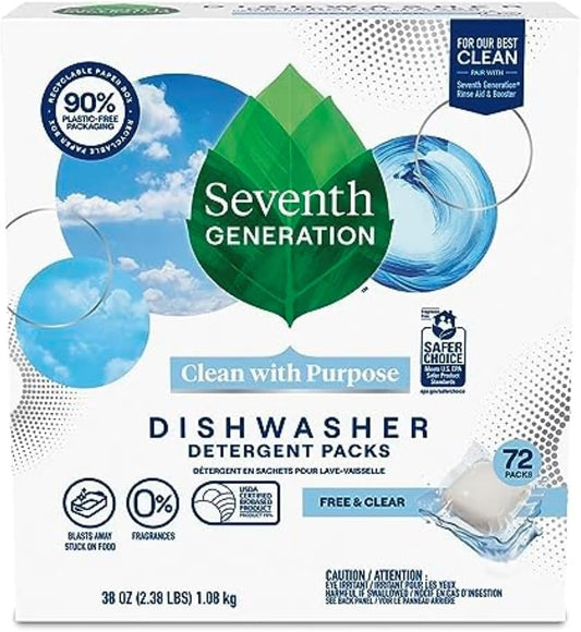 Seventh Generation Free & Clear Dishwasher Detergent Packs Have An Enzyme-Rich Formula That Cuts Through...