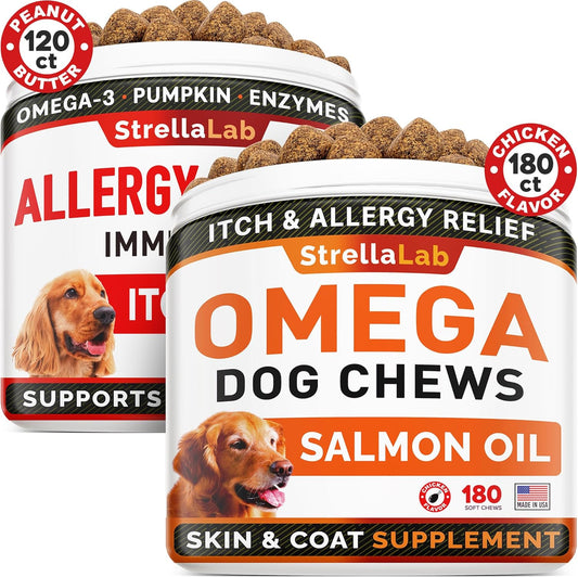Itch & Allergy Relief with Omega-3 for Dogs - with 500mg of Omega (EPA+DHA) per...