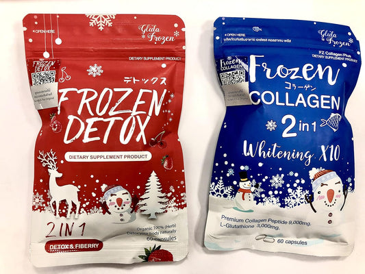 Frozen Detox+Frozen Collagen Whitening x10 Glutathione 10000 mg Reduce acne Freckles Melasma Aura Whitening Lightening...