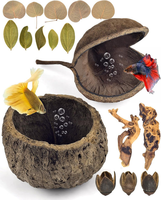 Enhance Your Aquarium With These Tank Decorations, Featuring Natural Nutshell Cave, Coconut Shell Breeding Bowl,...
