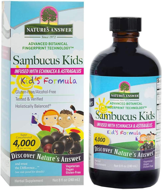 Natures Answer, Sambucus Kids Formula is made from 4,000 mg of fresh Elderberries per serving....