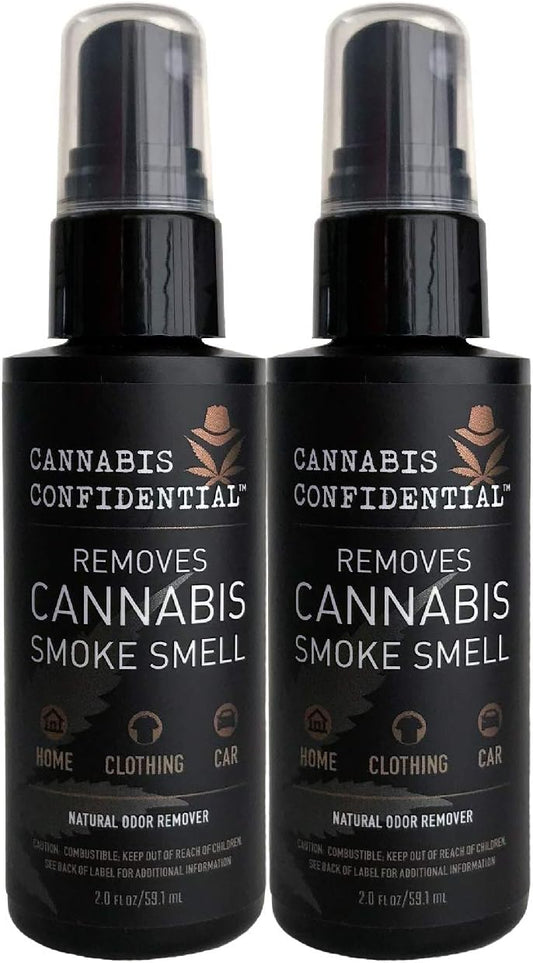 Contains 2 - 2 ounce travel friendly bottles of Cannabis Confidential Natural Odor Remover Spray10Safely...