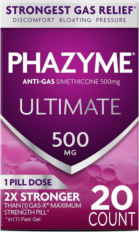 Phazyme Ultimate With 500 Mg Simethicone Is The Strongest Gas Relief In One (1) Fast...