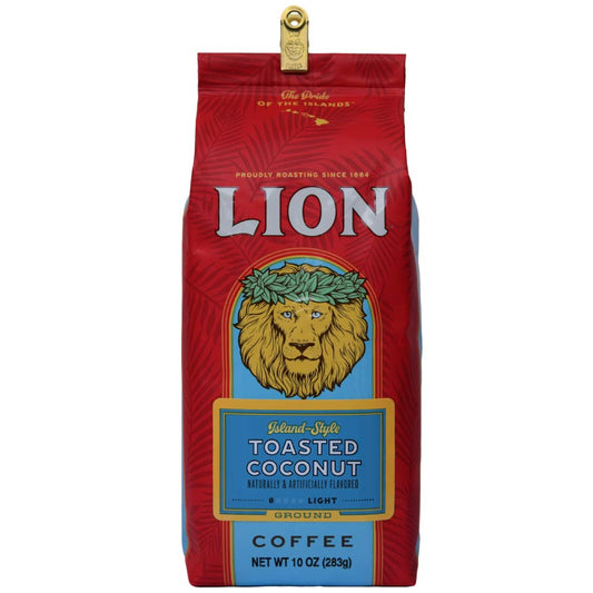 Lion Coffee Toasted Coconut Flavored, Light Roast Whole Bean Coffee, A Taste Of Aloha - 24 Ounce Bag