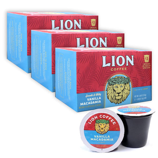 This LION vanilla macadamia coffee features lightly roasted whole coffee beans flavored with delicious macadamia...