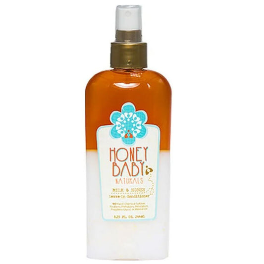 This lightweight Honey & Milk Protein infused leave-in conditioner and detangler aids in removing knots...