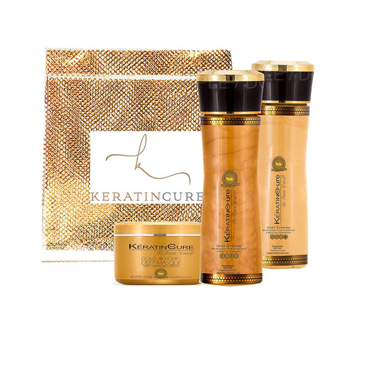 Keratin Cure Brazilian Gold & Honey Sulfate Free Shampoo Conditioner Masque 3pc Best for Damaged...