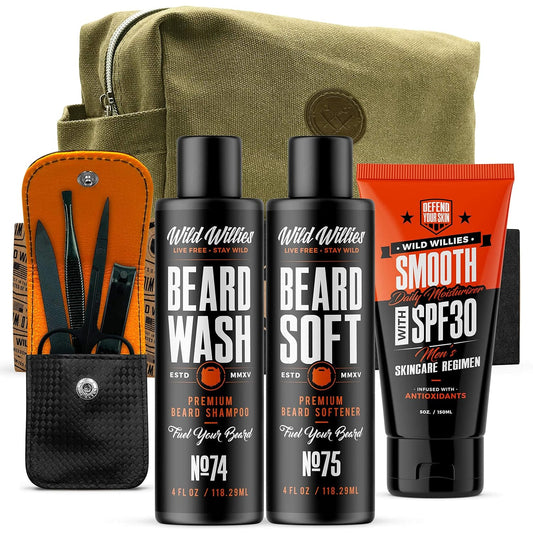 7-Piece Beard Shampoo & Conditioner Set - The Rebel Gift Set by Wild Willies -...