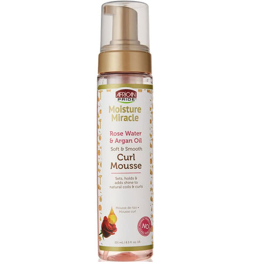 African Pride Moisture Miracle Rose Water and Argan Oil Curl Mousse conditions hair while adding...