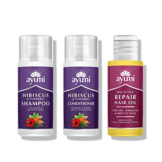 Our Ayumi Repair hair travel bundle is perfect for dry and brittle hair. A reviving...