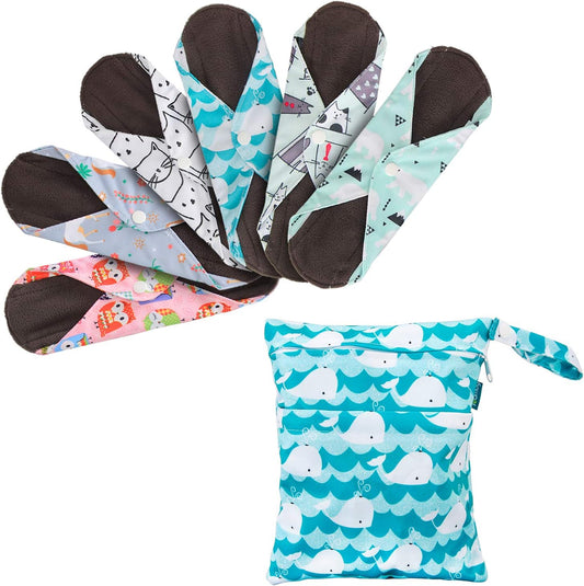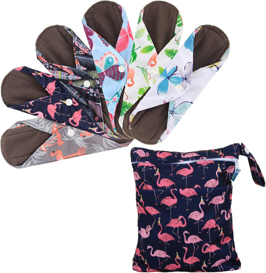 6Pcs Reusable Sanitary Pads: Dimensions: 8 X 7 Inches, 4 Layers, Made Of Charcoal Fiber...