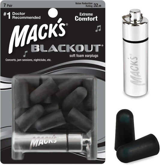 Mack's Blackout Soft Foam Earplugs, 7 Pair with Travel Case - 32 dB Highest NRR,...