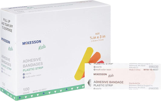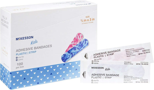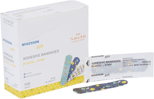 Mckesson Kids Adhesive Bandages, Sterile, Plastic Strip, Pink/Blue, 3/4 In X 3 In, 100 Count, 1 Pack