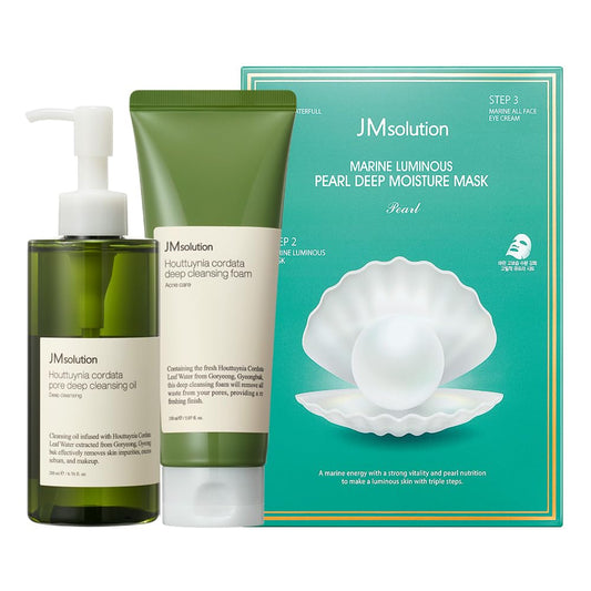 Jmsolution Skin Care Bundle- Heart Leaf Micro Cleansing Oil With Marine Luminous Pearl Mositure Mask