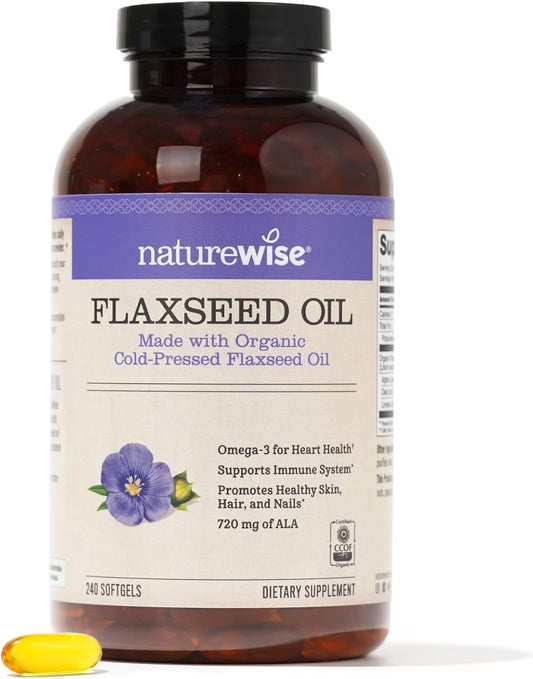 Highest Potency Ala: Naturewise Organic Flaxseed Oil Delivers 720 Mg Ala Omega-3 Essential Fatty Acids...